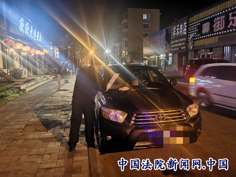 当晚,王某驾驶该车辆到柳河县内一家饭店与朋友聚会,他以为天晚了,法院工作人员已经下班,想刻意钻空子,认为不会有人发现他的车,自以为很“安全”,在饭店内觥筹交错。可他没想到的是,在申请执行人的举报下,艾法官迅速回到单位组织人员,整理装备,在半个小时内已经带人到达现场。艾法官当场对车辆办理扣押手续,并将车辆扣回法院。