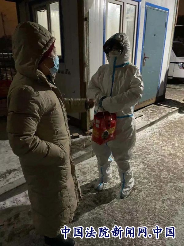 1月20日,正值农历腊月初八,晚19时30分,正值卡点值守的法院干警吕晶同志收到了热心市民送过来的四盒热乎乎的八宝粥。热心群众说:“值夜班的人一宿一宿的,太辛苦了,这是家人刚熬的八宝粥给夜班的人吃”。