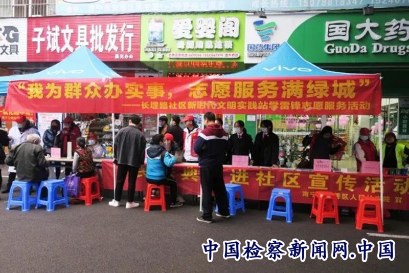 检察讯 3月5日,第58个雷锋日到来了,南宁市青秀区人民检察院深入长堽路社区开展民法典法律宣传咨询志愿服务活动,用实际行动践行弘扬雷锋精神。通过活动,进一步提升了社区群众的法治意识,同时,也为全国两会召开期间营造浓厚的法治宣传氛围。