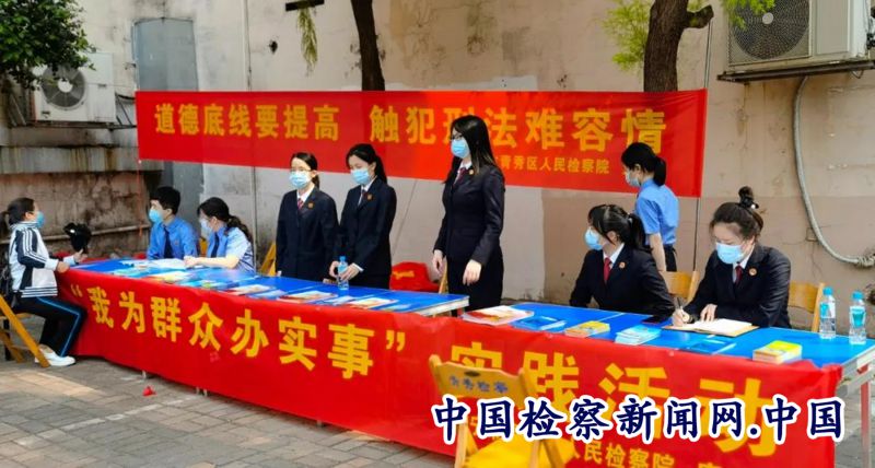 检察讯 为扎实推进检察队伍教育整顿,3月29日,南宁市青秀区人民检察院组织干警走进方园社区,开展“我为群众办实事”实践活动,积极为群众提供法律服务及普法宣传,切实为民服务。